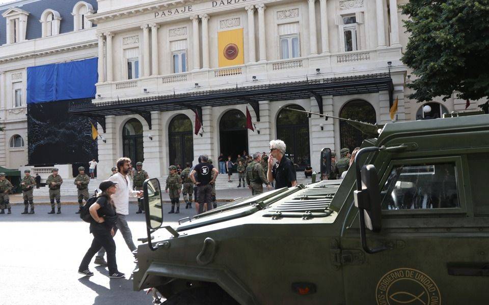 Según se pudo observar y durante una recorrida que hizo el móvil de EL DÍA por la zona, el pasaje Dardo Rocha ya luce intervenido con una cuidada ambientación que recrea un ficticio gobierno europeo. En el lugar se instalaron garitas de seguridad, estructuras escenográficas y numerosas banderas rojas y amarillas que refuerzan el clima político que propone la producción.