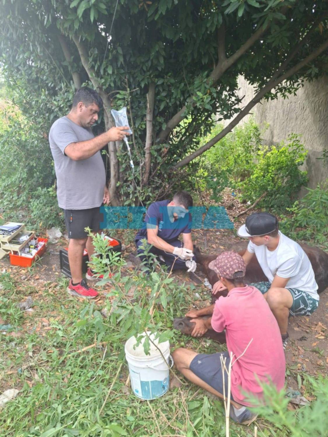 Tras el accidente, veterinarios y personal de la Policía Rural acudieron al lugar e intentaron salvarle la vida, pero pese a los esfuerzos realizados, el cuadro era irreversible. Luego de un largo momento de sufrimiento, el caballo terminó muriendo. Fue un vecino el que llamó a dicho veterinario, hizo una colecta para pagarlo y logró saldar la deuda.