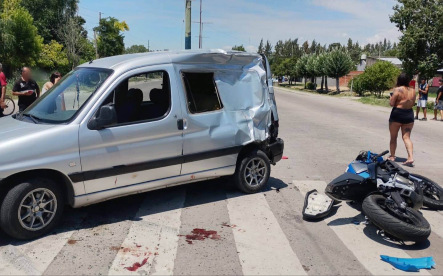 Cerca del mediodía, personal del Comando de Patrullas acudió a un llamado al 911 que alertaba sobre un choque en la mencionada esquina. Al arribar, los efectivos constataron la veracidad del hecho: una camioneta Peugeot Partner color gris, conducida por una mujer de 52 años, había impactado con una motocicleta CF Moto de 650cc azul.