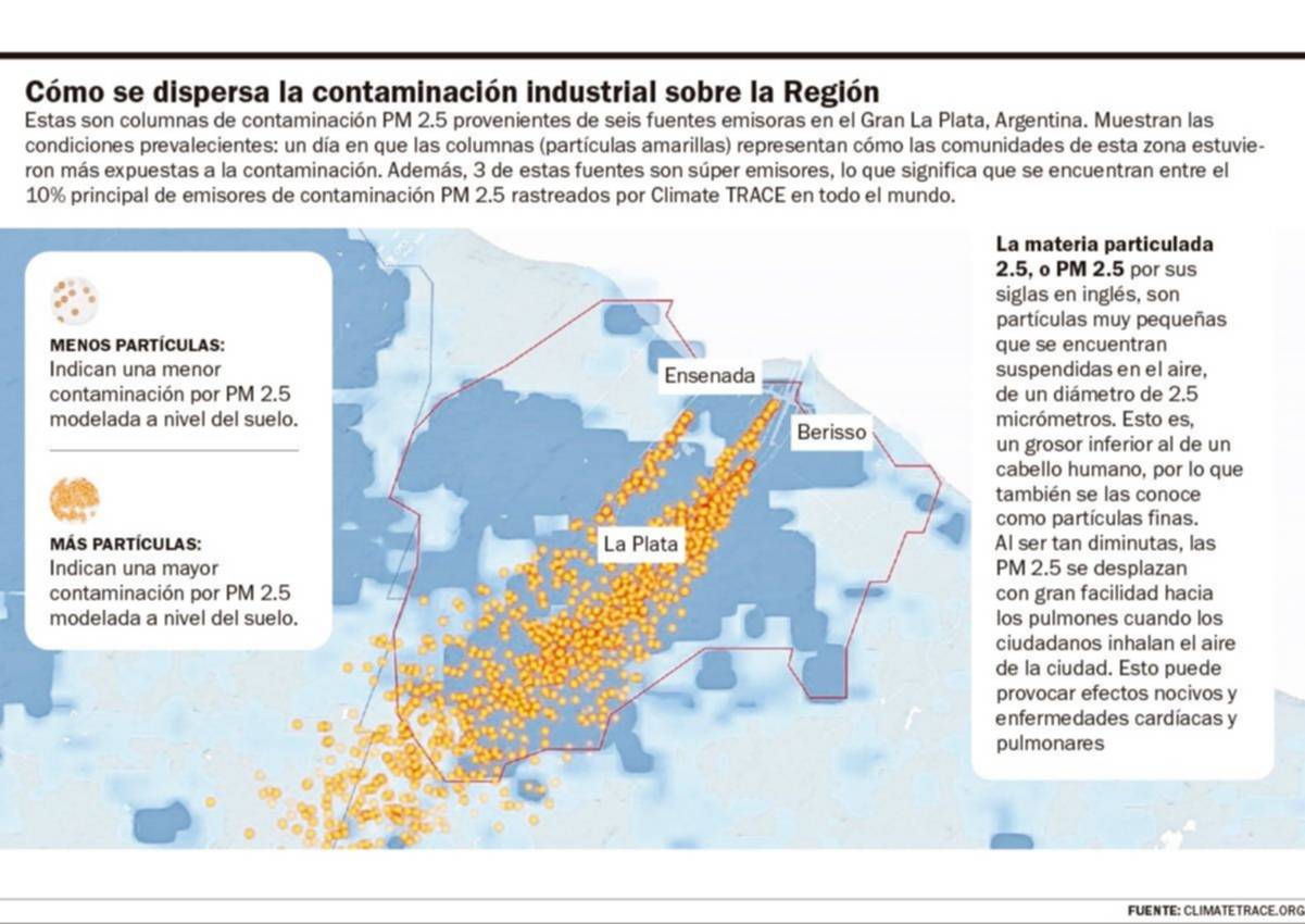 Aunque estudios recientes indican que los niveles de contaminación atmosférica industrial han mostrado descensos puntuales en años previos, el monitoreo satelital de la organización climática permite identificar con precisión las fuentes que aún superan los umbrales recomendados en la Región. Además la industria petroquímica, el parque automotor y la gestión de residuos sólidos en el Gran La Plata contribuyen al perfil de emisiones que la plataforma rastrea mediante sensores remotos, permitiendo visualizar emisiones a nivel de instalación individual (como plantas eléctricas o refinerías específicas), lo que sitúa al Gran La Plata como un área clave de observación para políticas de mitigación en el país.