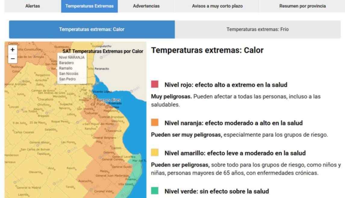 A su vez el SMN renovó el alerta a naranja, lo que implica que el calor extremo puede provocar "efecto moderado a alto en la salud", según el SMN. Las temperaturas del rango previsto "pueden ser muy peligrosas, especialmente para los grupos de riesgo", indicó el organismo.