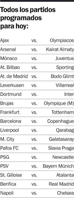 Los otros equipos con chances de avanzar directo a octavos de final son Inter (que cuenta con Lautaro Martínez), Juventus, Borussia Dortmund, Galatasaray y Qarabag.