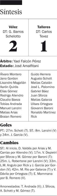 Vélez, por lo realizado a lo largo de los noventa minutos, ganó bien, aunque no debió sufrir tanto para doblegar a un Talleres que había tenido un bien rendimiento, sobre todo después del gol de Augusto Shott, cuando supo marcar los tiempos del encuentro.