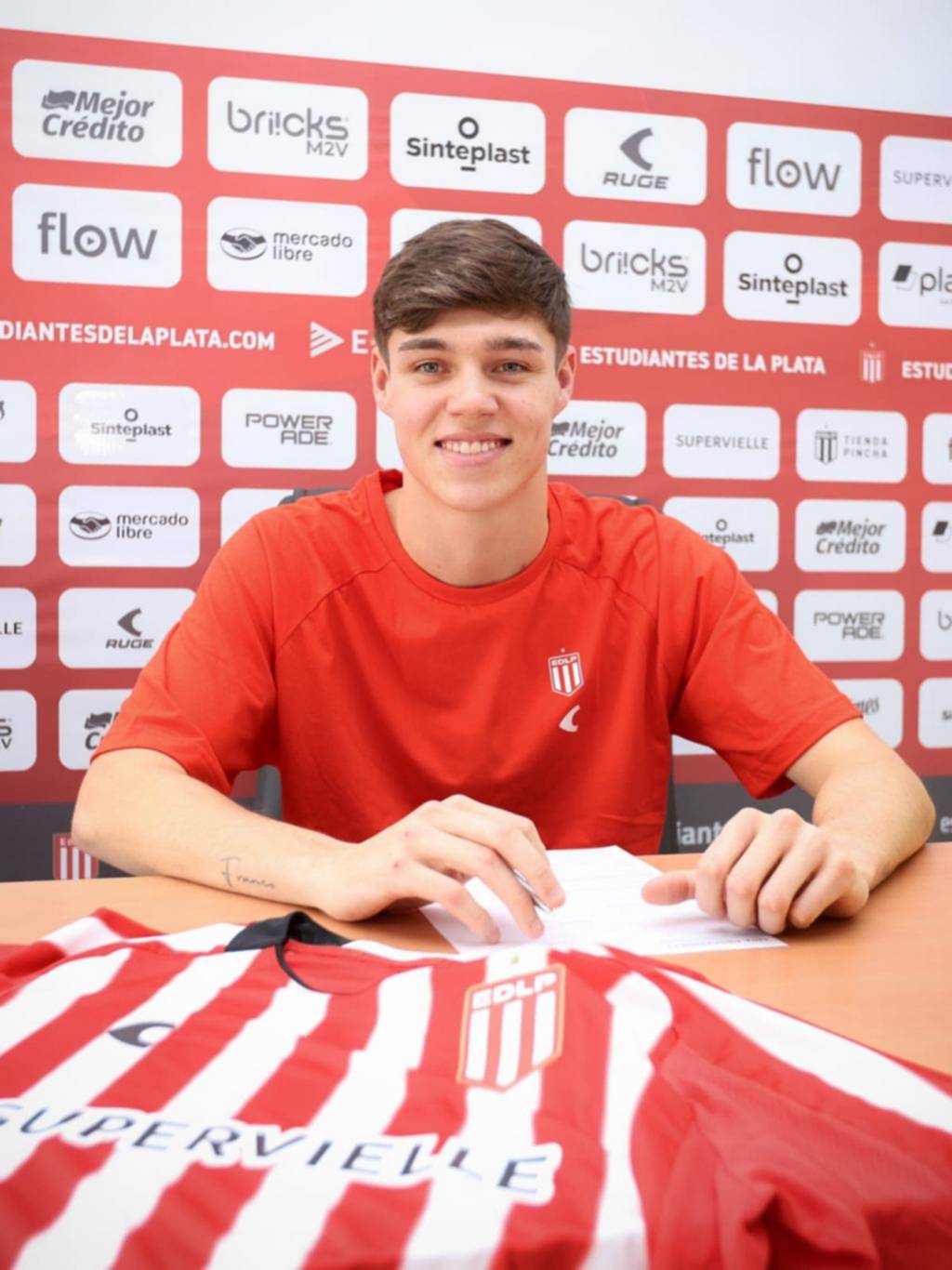 Tomás Palacios firmó ayer su contrato con Estudiantes / Prensa EDLP
