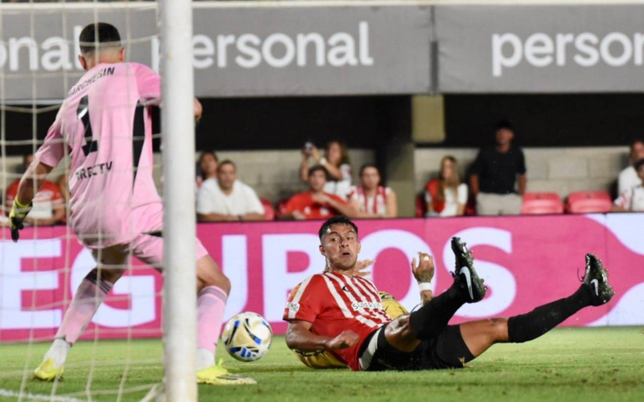 A los 27, Estudiantes rompió la igualdad a través de un centro al segundo palo, donde Santiago Núñez entró como una locomotora y conectó el envío para establecer el 1 a 0. El defensor arrastró a su marcador, Ayrton Costa, que estuvo lejos de frenarlo y sorprendió a Agustín Marchesín.