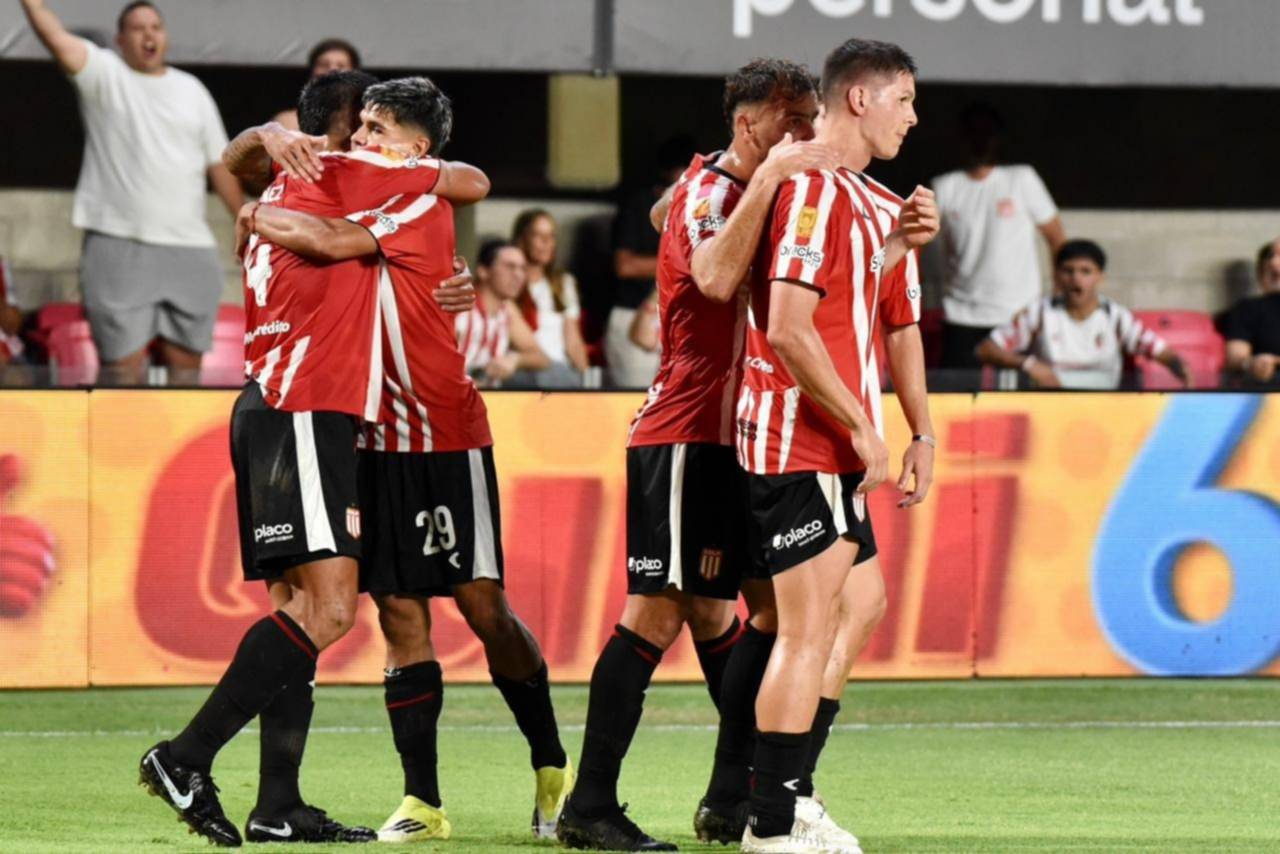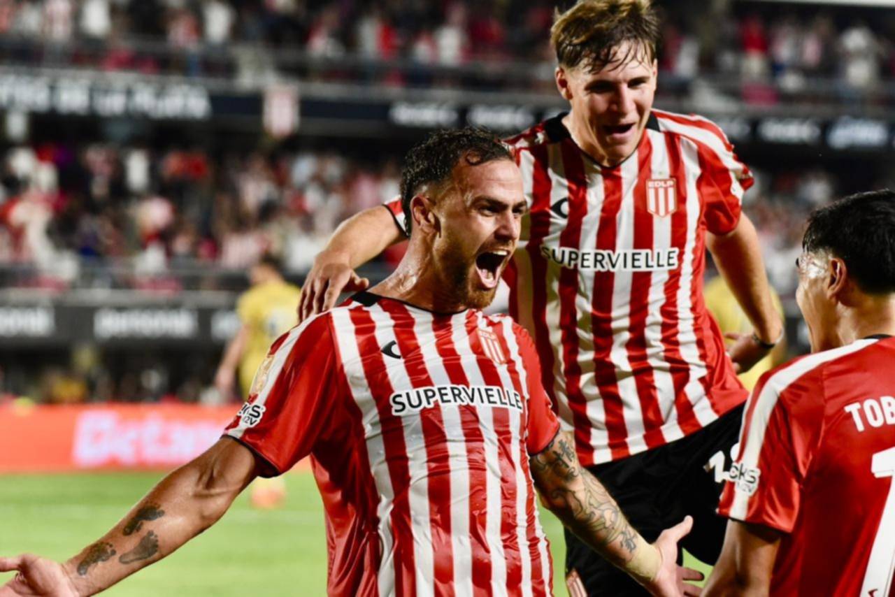 Los goleadores se van a fusionar en un abrazo: Santiago Núñez y Leandro González Pirez, gracias a ellos, el Pincha cantó victoria