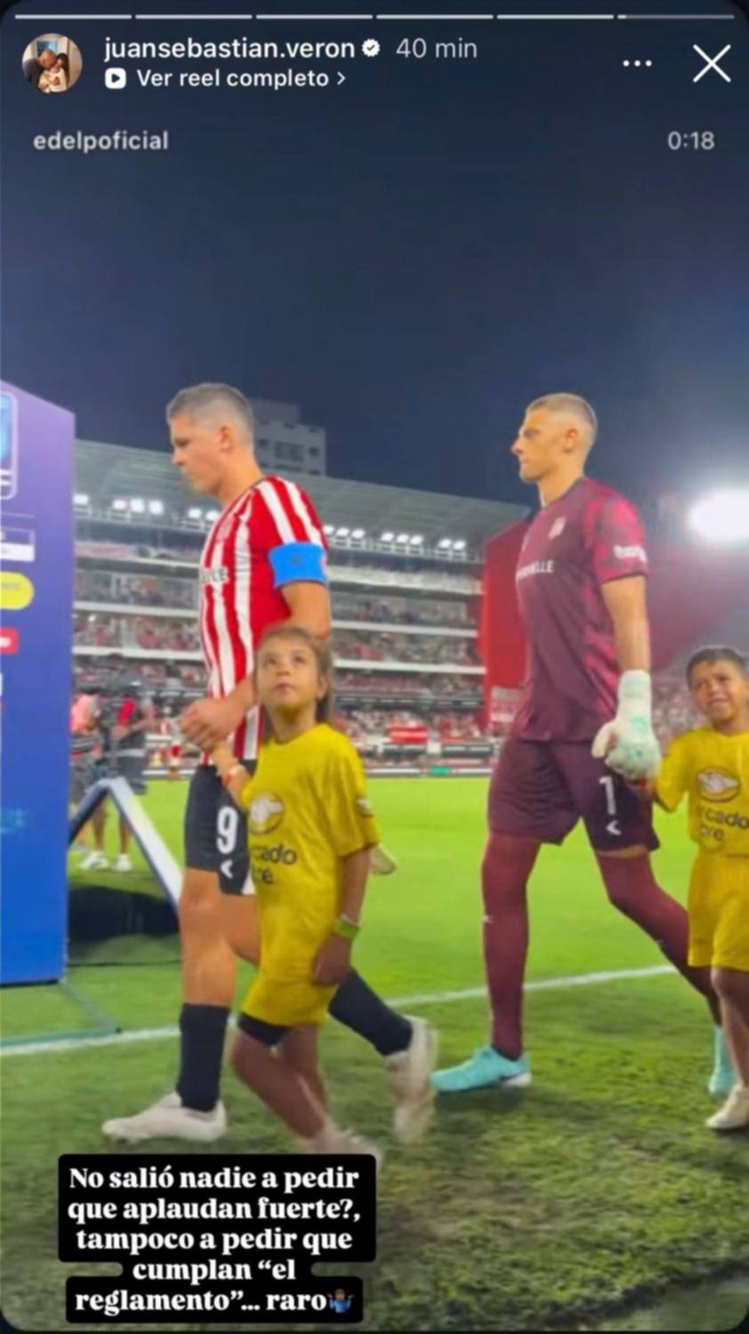 La “Bruja” Verón, como no podía ser de otra manera, no tardó en manifestar sus dudas respecto al pasillo de Boca al local, bicampeón del fútbol argentino. A través de sus historias, deslizó: “¿No salió nadie a pedir que aplaudan fuerte? ¿Tampoco a pedir que cumplan ‘el reglamento’?.. Raro”.