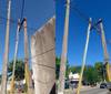 Poste lindero a estación de servicio, a punto de caerse en La Plata