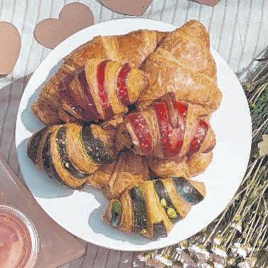 Por un lado, un croissant rojo relleno con ganache de chocolate belga, intenso y elegante; por otro, un croissant verde con ganache de chocolate blanco y pistacho, de perfil más suave y cremoso. Ambas opciones mantienen el sello artesanal y la calidad que caracterizan a la marca.