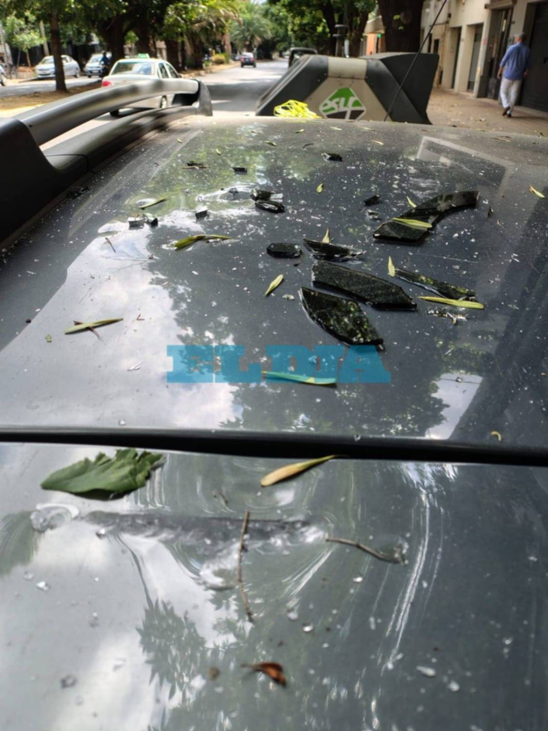 De acuerdo con los relatos, el cristal impactó en el techo de un auto que estaba estacionado contra el cordón de la calle.