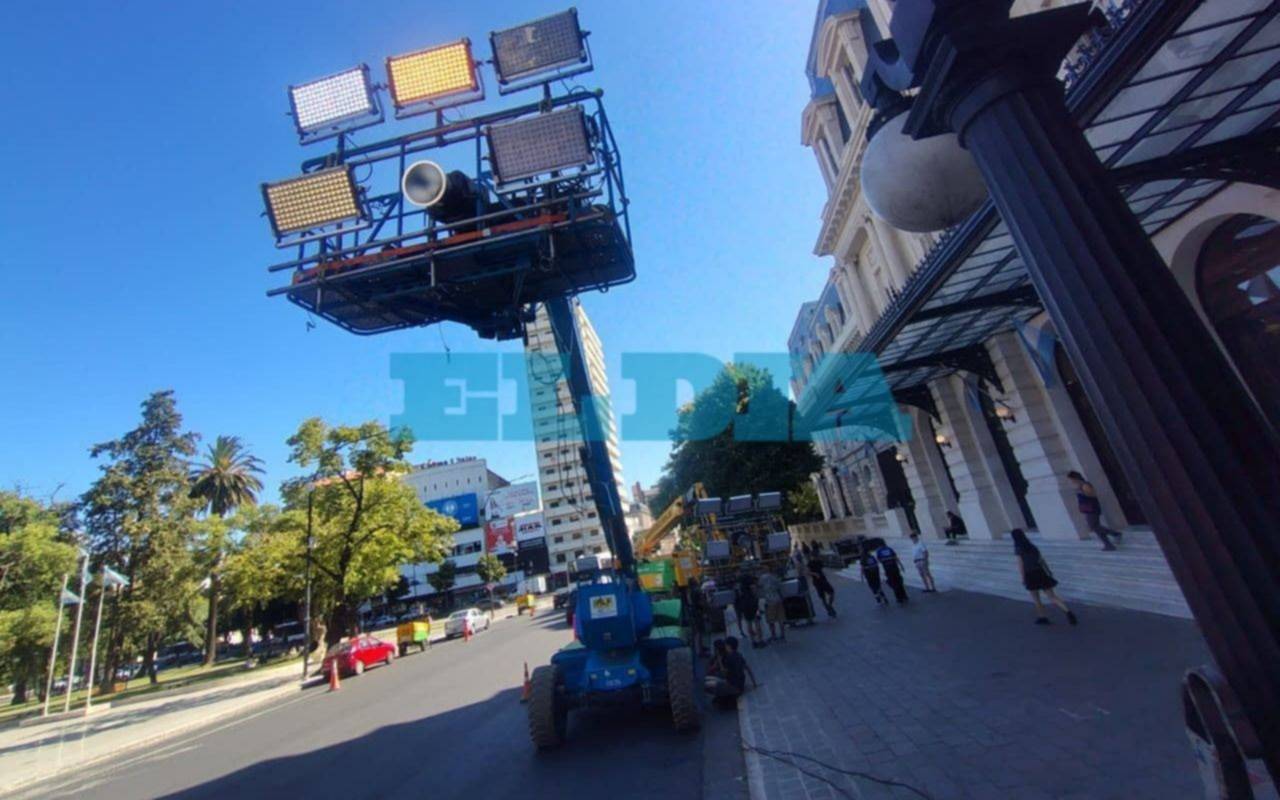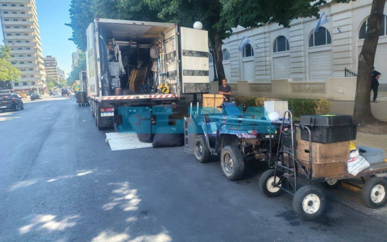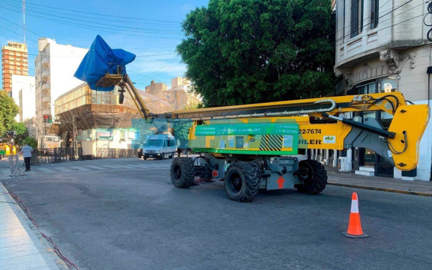 Según explicaron, los cortes de las calles del centro comenzaron antes "porque la productora está armando toda la escenografía".