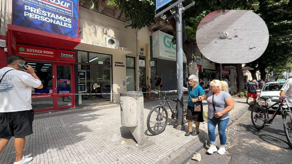 El episodio de la víspera ocurrió en horario pico, cuando el material se desprendió de los balcones de una casona de estilo. Debajo de los balcones, se divide en dos locales donde funcionan una financiera y una casa de cambio. Uno los cascotes de la mampostería impactó en el hombro de un hombre que descendía de un micro de la línea Oeste. Según relataron testigos a este diario, la víctima sufrió una contusión leve y raspones, pero el desenlace podría haber sido peor: “Fue un trozo considerable; si le pegaba en la cabeza, estaríamos hablando de otra cosa”, advirtió un denunciante. Ante la ausencia de custodia oficial en los primeros minutos, se improvisó una cinta de seguridad que obligaba a los peatones, incluidos adultos mayores, a bajar a la calzada vehicular para sortear el peligro, exponiéndose al intenso flujo de micros, motos y autos de la avenida.