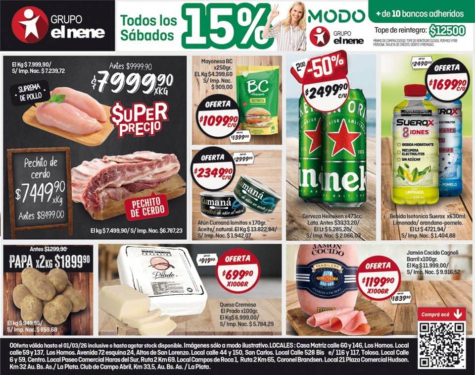 Visitá tu supermercado EL NENE más cercano en Los Hornos, Altos de San Lorenzo, San Carlos, Tolosa, La Plata, Brandsen y Hudson, y aprovechá los mejores precios del fin de semana.