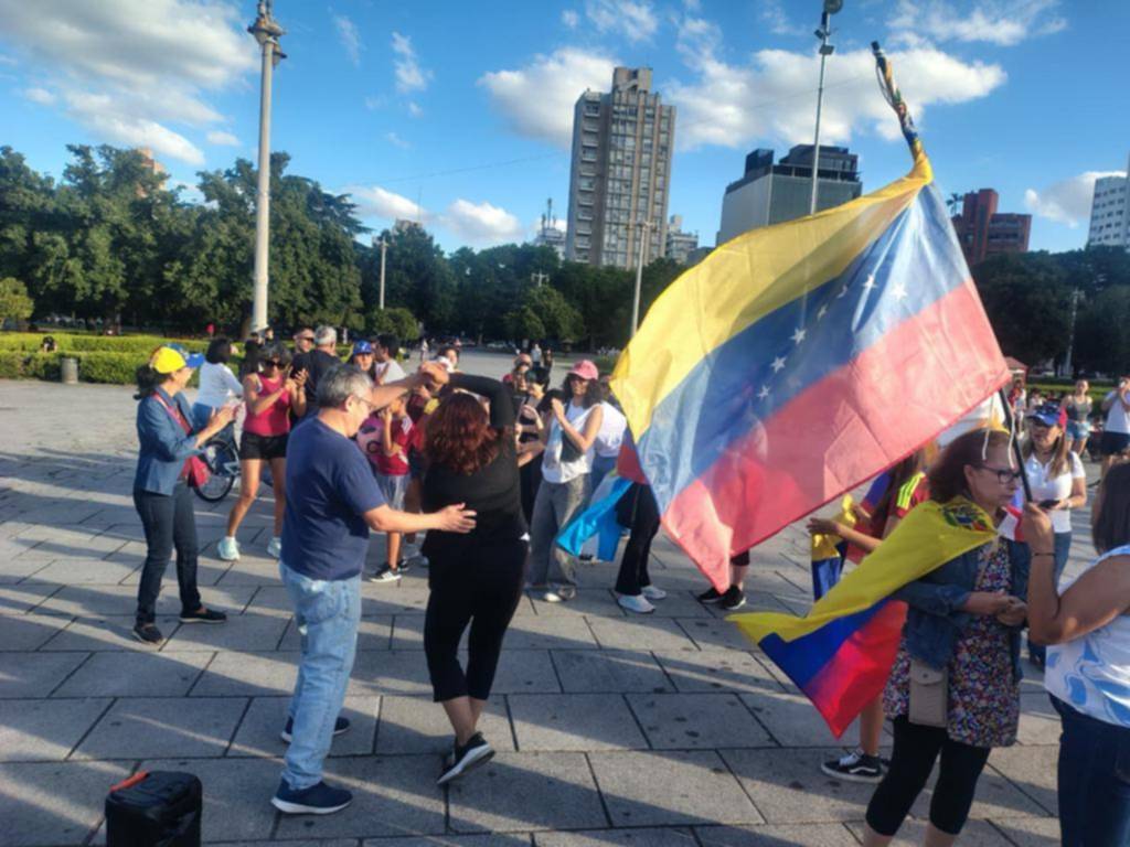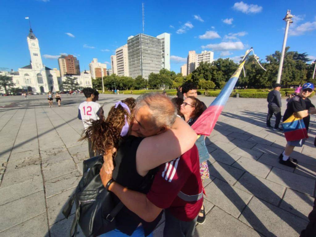 La pareja conformada por Armando y Rusmani Ortiz también participó de la movilización. “Fue maravilloso”, resumió ella al describir la noticia. Armando vive en Argentina desde hace siete años y Rusmani desde hace cuatro. Ambos señalaron que sus hijos estudian y trabajan en el país, aunque parte de su familia permanece en Venezuela, en la zona de Maracay. “Esta mañana pudimos comunicarnos y nos dijeron que había filas para comprar comida y combustible, pero que la situación estaba tranquila”, contó Rusmani.