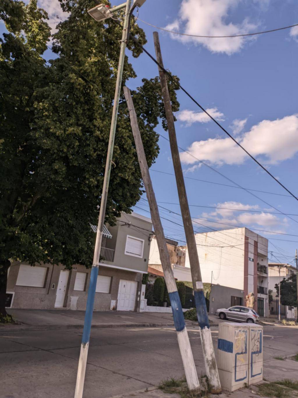 Una vecina de calle 37 altura 494 entre 4 y 5 se contactó con este diario para reclamar por “dos postes sobre vereda que se encuentran inclinados; están quebrados y solo los sostienen los cables, a punto de caerse...”. Agrego que "no sabemos si estos postes pertenecen a la empresa, ya que no están identificados”, comentó la frentista.