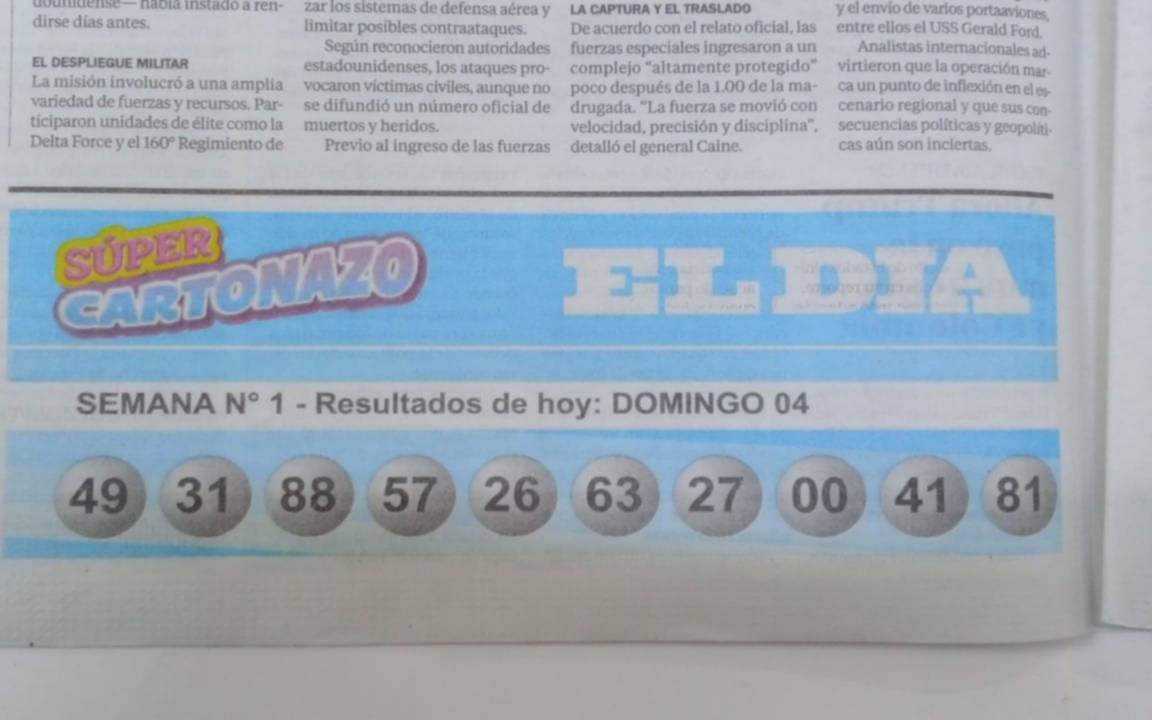 El Cartonazo del diario EL DIA quedó vacante al no registrarse ganadores en la última jugada y ahora se juega por un pozo de 3.000.000 de pesos y la línea de 300.000 pesos. Con la nueva tarjeta que se entregó gratis con la edición impresa del viernes se renuevan las ilusiones.
