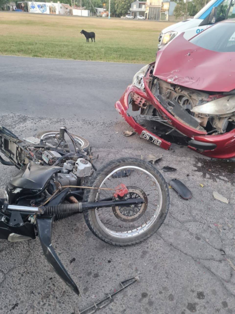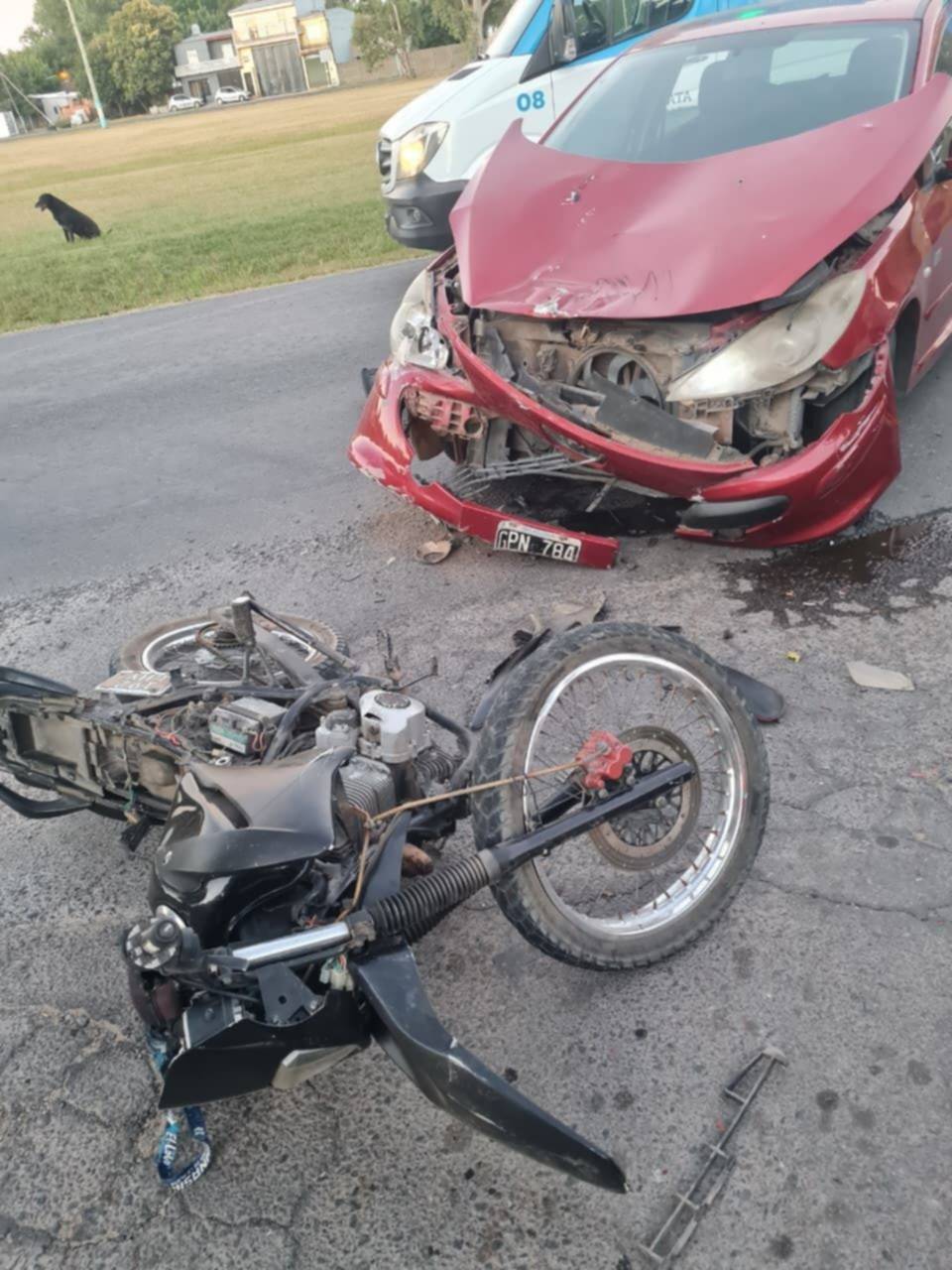 Dos jóvenes resultaron heridos tras un impactante accidente en la intersección de diagonal 144 y 418, en Arturo Seguí. Los involucrados son una motociclista y un auto.