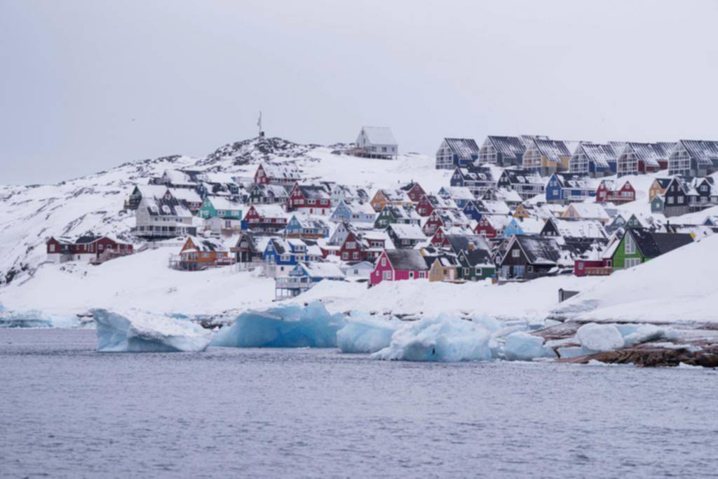 Viviendas cubiertas de nieve vistas desde el mar en Nuuk, Groenlandia. EE UU quiere el territorio / AP