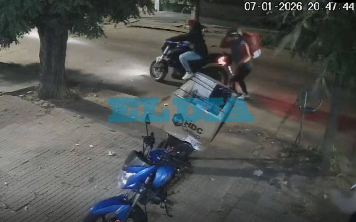 VIDEO. Falsos repartidores asaltaron a un delivery y le robaron la moto en La Plata
