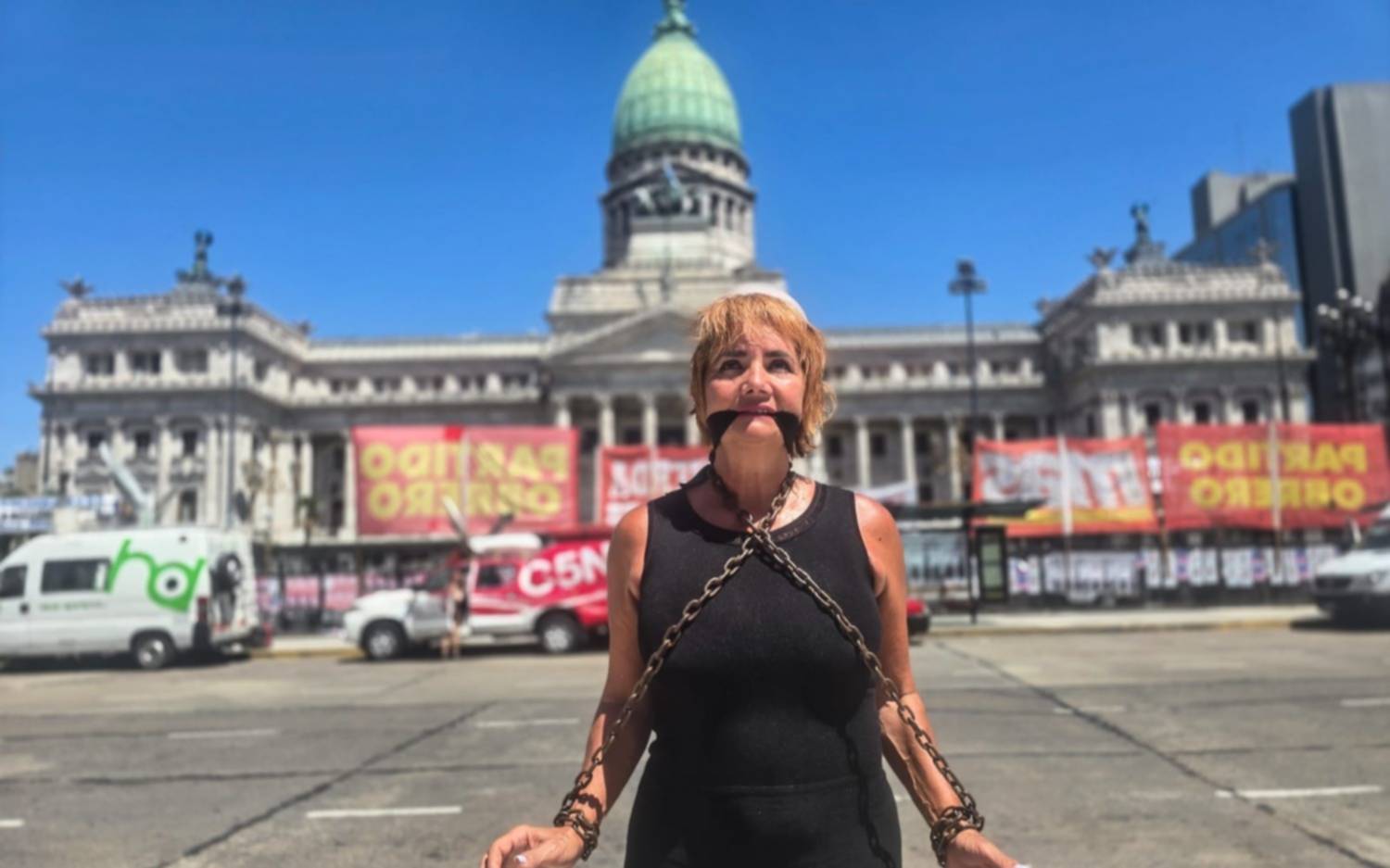 Nancy Pazos se encadenó en el Congreso en rechazo a la reforma laboral