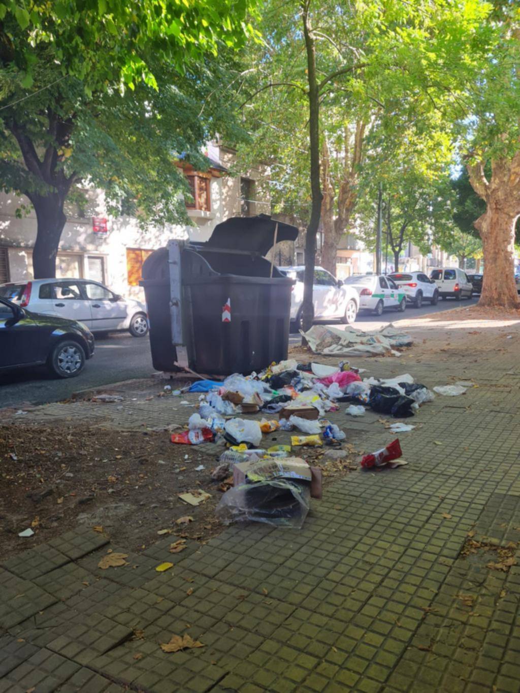 Vecinos de 42 entre 7 y 8 expresaron su malestar por el estado de los contenedores de basura en la zona. Según relatan, la vereda amaneció cubierta de residuos y uno de los cestos estaba con la tapa rota. “Con el calor desprendía un olor muy feo”, contó un vecino.