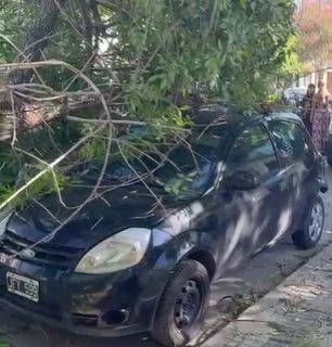 Esta mañana un sector de zona norte se vio revolucionado por la caída de una enorme rama de un añejo árbol. Además del susto que causó, terminó destrozando un auto que se encontraba estacionado.