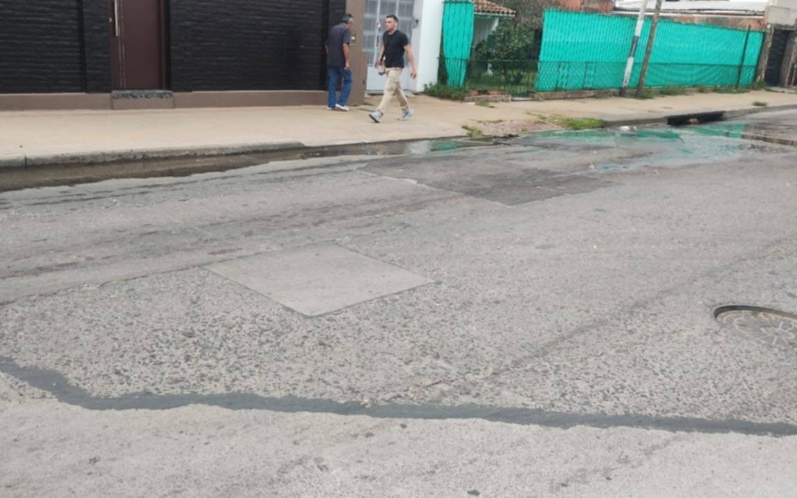 En el lugar se observa agua acumulada y residuos cloacales que se escurren hacia la calle, lo que complica el tránsito y expone a peatones y automovilistas a un foco de contaminación constante.