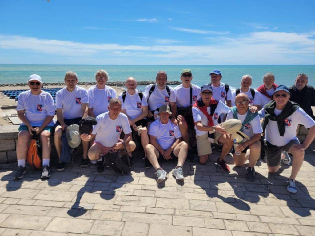Así fue como casi tres decenas de hombres, en 2023 y con una remera diseñada para la ocasión, replicaron una caminata que hicieron hace 50 años: “Caminamos de Colón y Güemes a Playa Grande. La gente nos miraba pasar. Decíamos que éramos una delegación de PAMI. Éramos más que veteranos compartiendo un viaje: nos reencontramos con quienes fuimos”, manifestó Pablo Juanes.