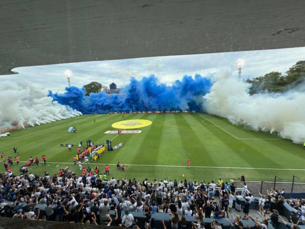 Cuando los futbolistas salieron al campo para realizar los movimientos precompetitivos, el clima ya era de ebullición. La expectativa, el nerviosismo y el folklore futbolero se mezclaron en un combo que solo el clásico puede ofrecer. El recibimiento estuvo a la altura de la cita: una marea azul y blanca cubrió las tribunas y tiñó el cielo del Bosque con humo y bengalas.