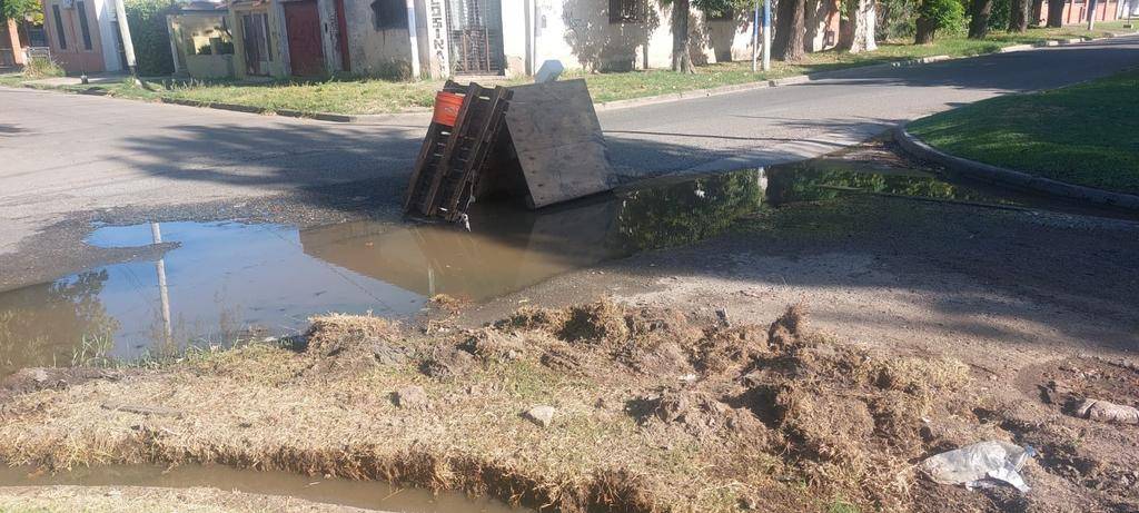 Según relatan en la zona, el problema lleva años sin resolverse. En ese lugar se acumula agua de manera permanente como consecuencia de obras deficientes realizadas cuando se asfaltaron las calles en el barrio. Esta situación genera una “laguna artificial” que impide ver el pozo, convirtiendo el cruce en una trampa para quienes circulan por la zona.
