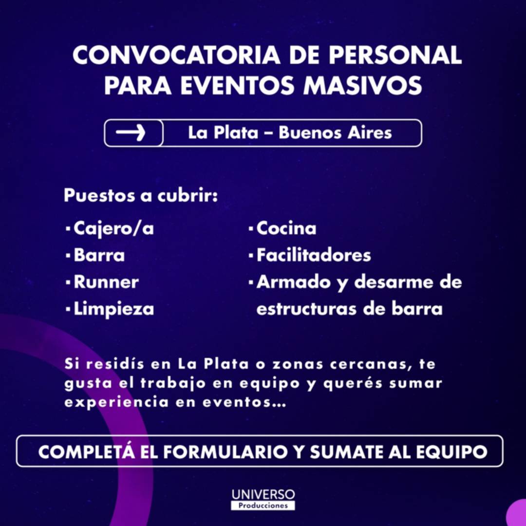 Según se informó, la misma será responsable del personal afectado a los distintos eventos que se realizarán de manera eventual en el predio. En ese marco, se abrió la inscripción para cubrir múltiples vacantes que puede favorecer a quienes vivan en La Plata, Berisso, Ensenada o zonas aledañas.