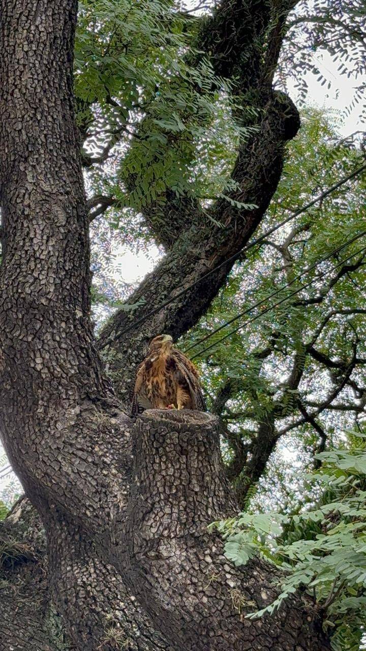 Durante varios minutos fue el centro absoluto de atención. Conductores bajaban la velocidad al advertir el grupo de personas señalando hacia el árbol. En redes sociales comenzaron a circular fotos y videos acompañados de preguntas: “¿Alguien sabe qué ave es?”; “¿desde cuándo hay águilas en el Centro?”.