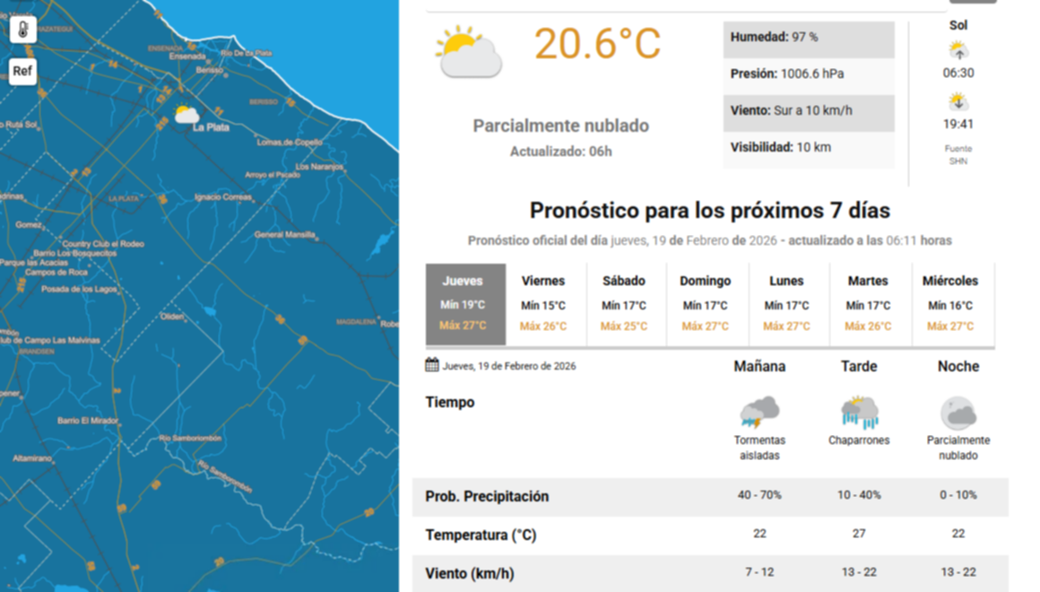 Nublado y con chance de lluvias: así va a estar el clima este jueves 19 en La Plata