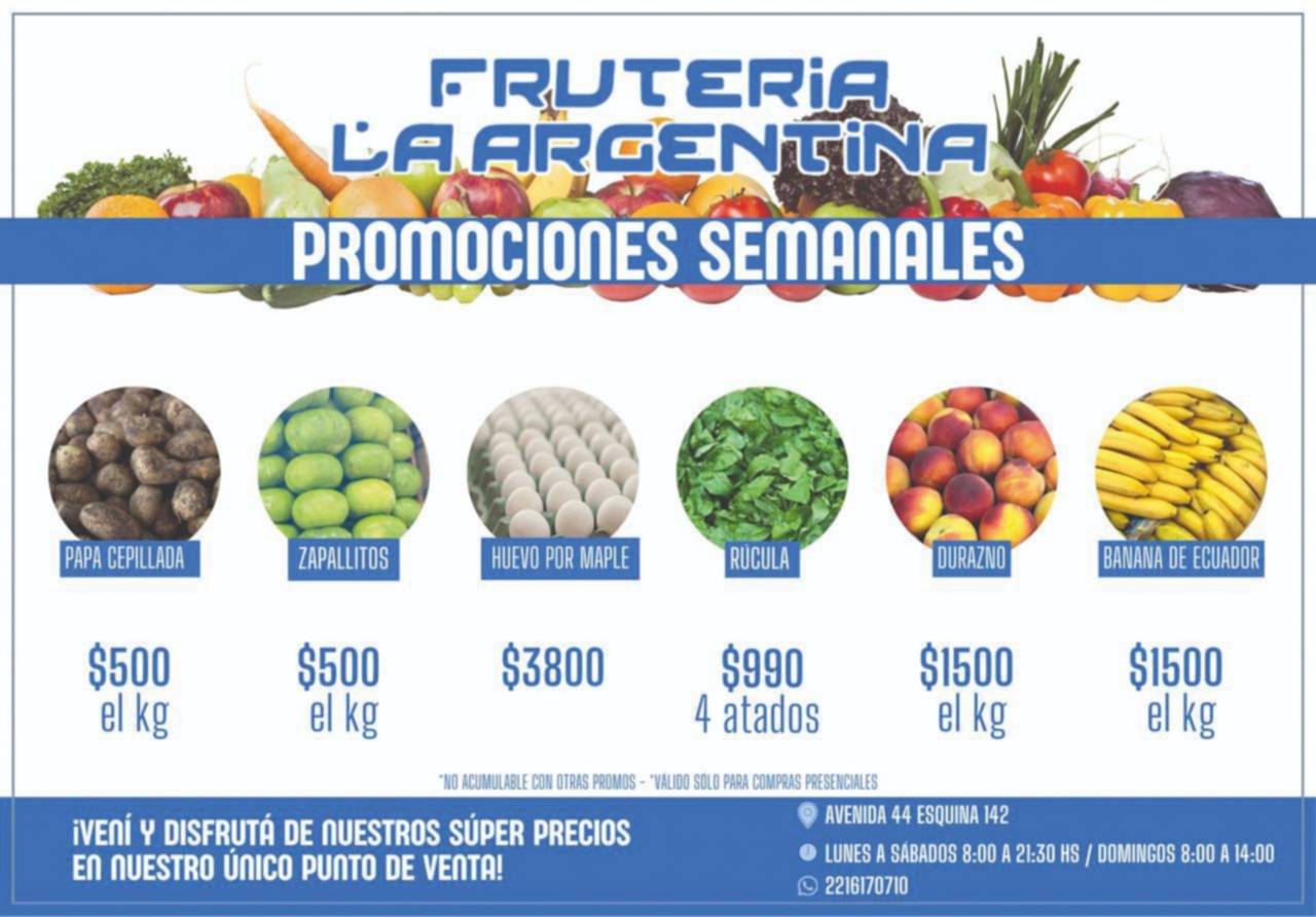 Estas son las promociones semanales de Frutería La Argentina, de avenida 44 esquina 142: