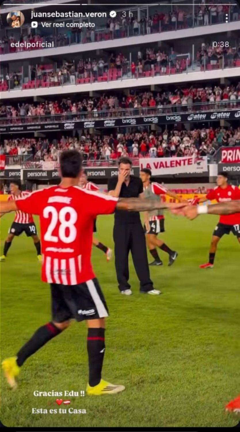 A través de una historia de Instagram, donde compartió el reel oficial del club para despedir al dt campeón, la Bruja Verón escribió “¡¡¡Gracias Edu!!! Esta es tu casa”.