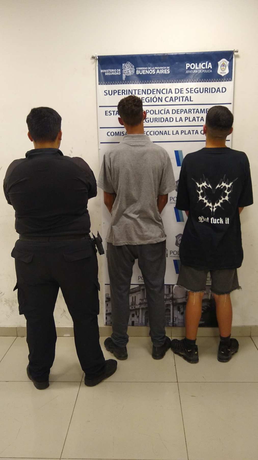Tras el llamado al 911, personal del Escuadrón Motorizado de la UPPL desplegó un operativo cerrojo en la zona. Con las características aportadas por la víctima, los efectivos lograron interceptar y aprehender a los acusados en calle 64 entre 19 y 20.