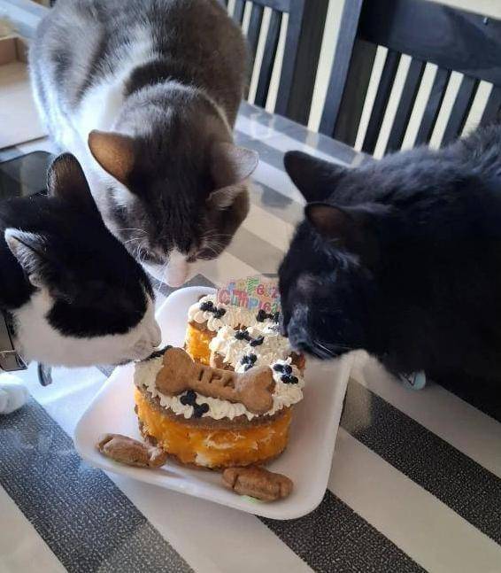 Hoy elabora tortas de cumpleaños para perros y gatos con ingredientes aptos para ellos como pollo, hígado y yogurt natural, pero a simple vista esto no se nota ya que simulan ser como la de cualquier fiesta infantil.