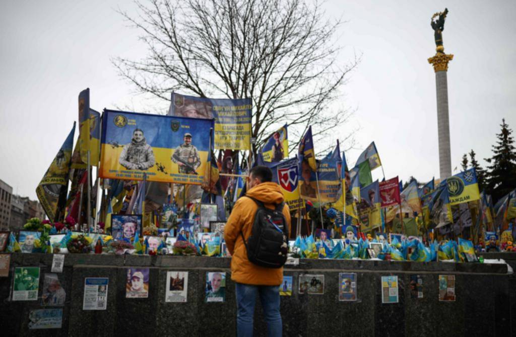 Homenaje a los soldados ucranianos y extranjeros caídos en la Plaza de la Independencia de Kiev /afp