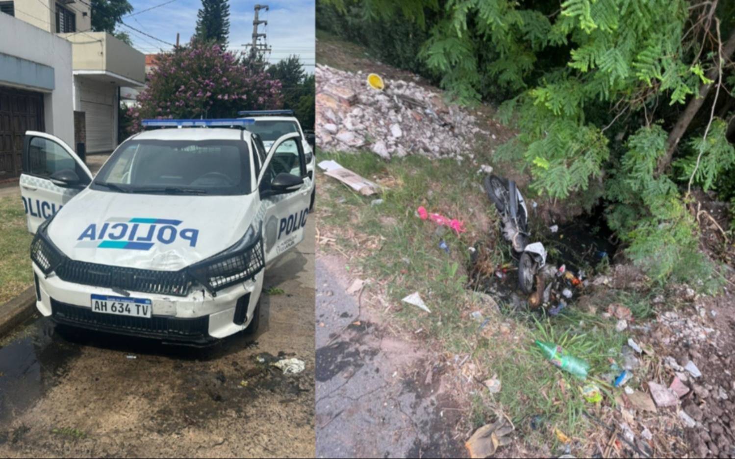 En un operativo policial de película en City Bell, que incluyó un choque en 461 y 16 que metió a una moto y a un patrullero dentro de una zanja, dos jóvenes fueron demorados por circular en un rodado del que no contaban con documentación. Además por hacer caso omiso al pedido para que detuvieran la marcha.