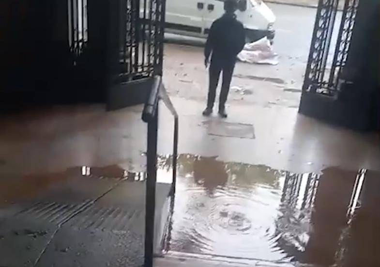La entrada se inundó con las lluvias de la madrugada / el dia