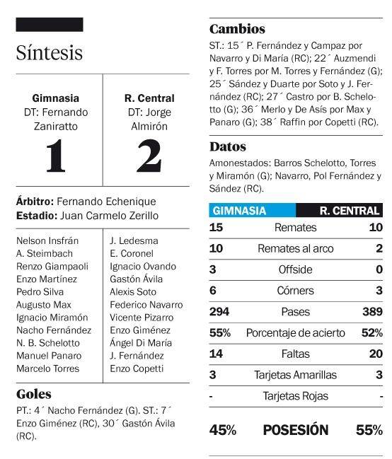 Es fútbol. Así como Gimnasia trajo tres puntos que no mereció desde Mendoza, la derrota 2-1 ante Rosario Central es un castigo demasiado exagerado para un equipo que jugó un gran primer tiempo, que en una mala transición de ataque a defensa pasó de casi gritar el segundo (córner olímpico del Heredero en el palo) a sufrir ela igualdad. Y después, sin escala, a sufrir una derrota injusta, aunque en el complemento nunca pudo siquiera acercarse al nivel de juego que Nacho, Max, Barros Schelotto y compañía aportaron en la primera mitad. Aún así, Ledesma fue la figura de la tarde.