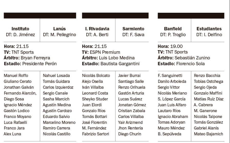 Este martes se baja el telón de la tercera fecha del Torneo Apertura con tres partidos. A las 19 Banfield ante Estudiantes (RC). Mientras que 21.15 en simultáneo Instituto frente a Lanús, e Independiente Rivadavia de Mendoza ante Sarmiento.