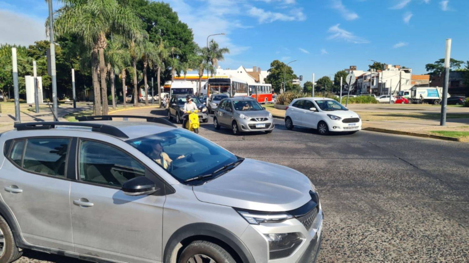 Caos de tránsito en 7 y 32 por los semáforos que no funcionan por la falta de luz (Foto: Adrián Sosa)