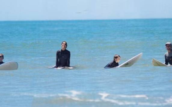 Así, quedó en evidencia por un posteo que hizo el actor en sus redes, donde compartió imágenes de ella caminando por la arena con una tabla de surf.