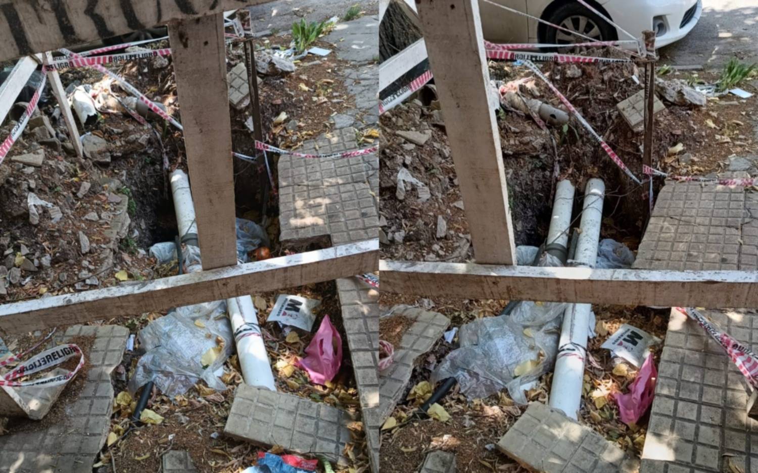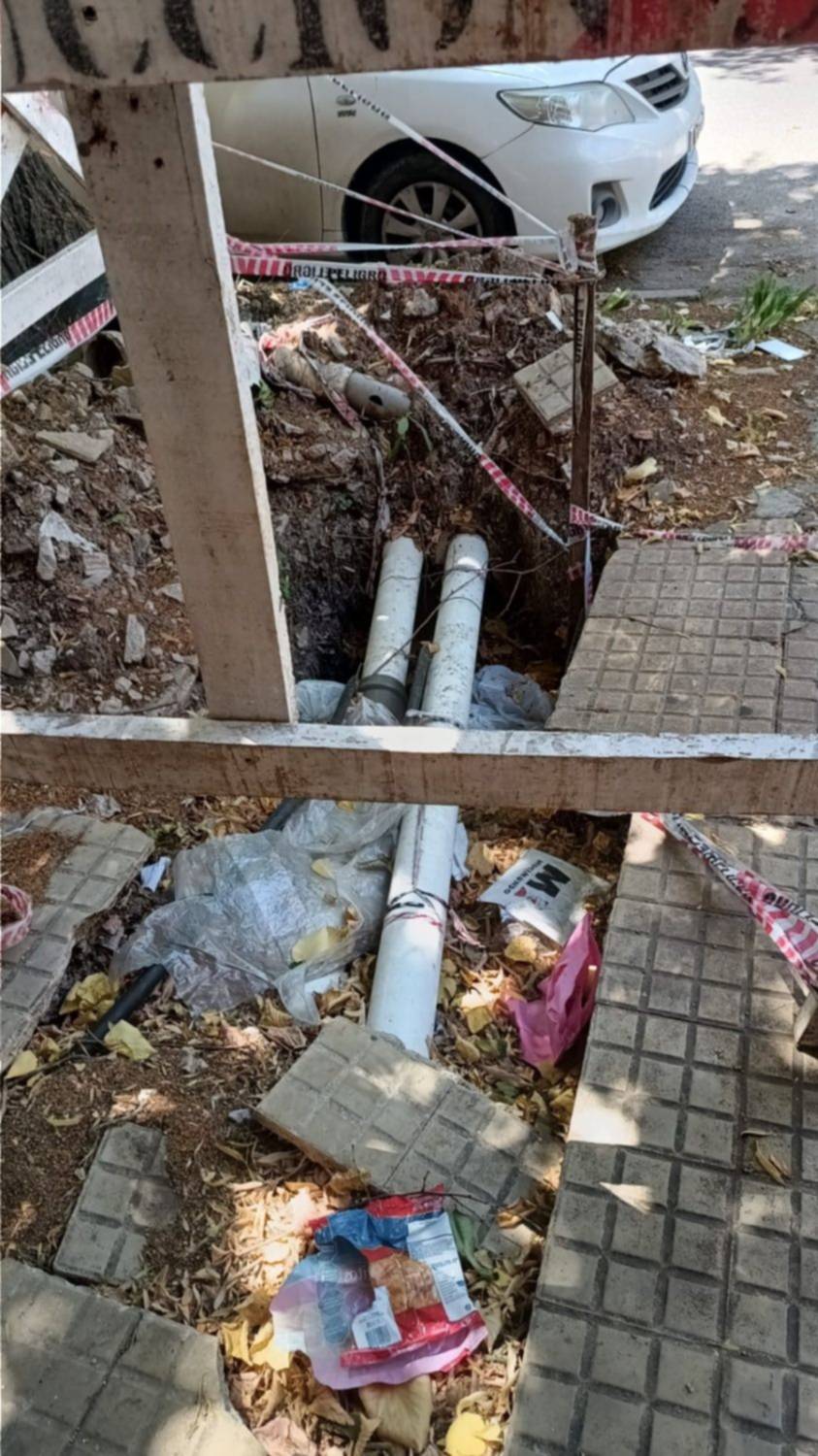 Según detallaron al Whatsapp de Diario EL DIA (221 477 9896) la obra de ABSA quedó inconclusa hace tiempo. “Es un peligro para el paso de peatones”, plantearon en el reclamo.
