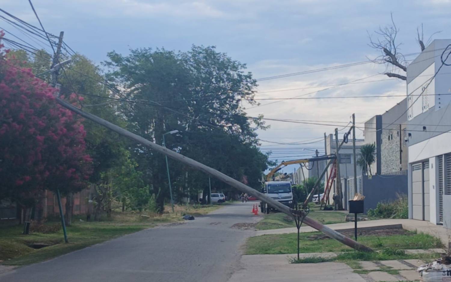 Según detallaron los frentistas, a pocos metros de allí “hay otro poste más” bajo el mismo riesgo. “Hablamos con todos. Hoy había gente trabajando pero levantaron todo y se fueron”, mencionaron.