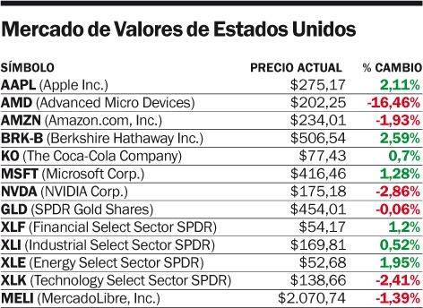 Entre las mayores pérdidas de la jornada se destacaron AMD, que se desplomó un 16,46%, Palantir, con una baja del 12,31%, y Micron Technology, que retrocedió un 9,48%.