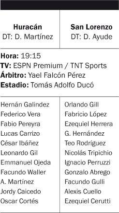 Desde las 19:15, Huracán recibe a San Lorenzo en la edición de uno de los clásicos más antiguos del fútbol argentino. El árbitro del juego en el Tomás Adolfo Ducó va a ser Yael Falcón Pérez mientras que ESPN Premium y TNT Sports televisan el encuentro.