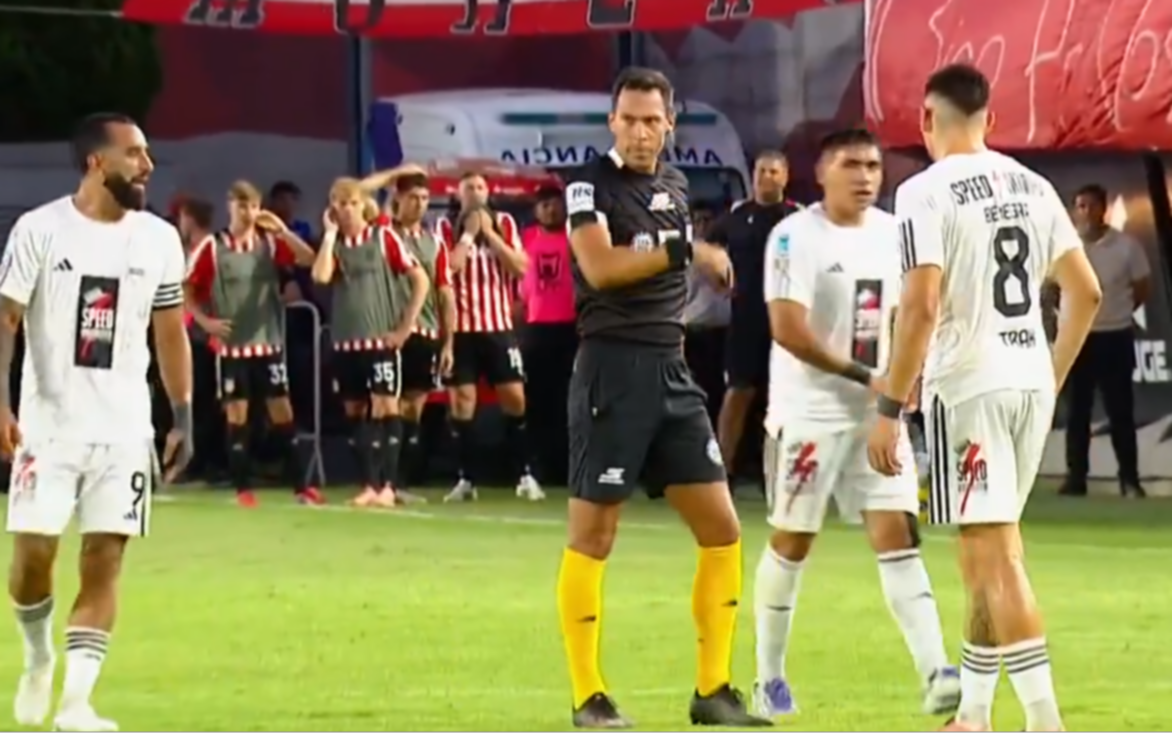La gran discusión del primer tiempo fue una triple revisión en el monitor del VAR que terminó con la sanción de una falta de Tobio Burgos ante la sorpresa de los presentes en el estadio.