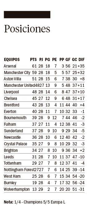 Manchester City consiguió un triunfo tan corto como importante (1-0) en su visita al Leeds, logrando así una cuarta victoria consecutiva y manteniendo la presión sobre el líder Arsenal. Un tanto de Antoine Semenyo justo antes del descanso bastó para dar los tres puntos al equipo de Pep Guardiola. El extremo internacional inglés se lanzó para cortar un centro de Rayan Aït-Nouri y continúa así convenciendo en sus primeras semanas como jugador de los Sky Blues, a los que se unió en enero, procedente del Bournemouth. Su gol hizo olvidar la ausencia de Erling Haaland.